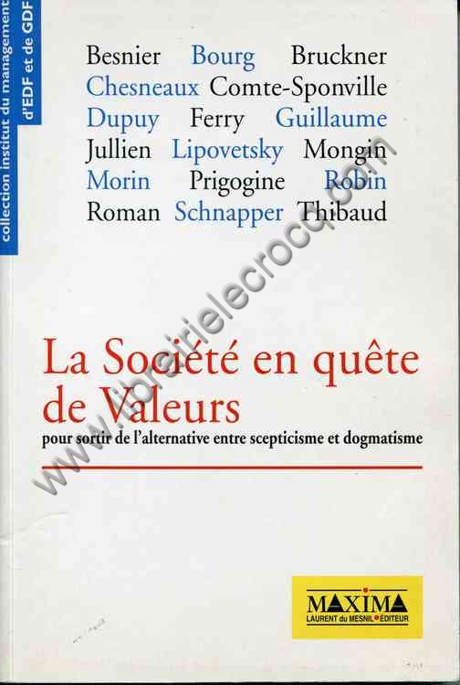 BESNIER (J.-Michel), BOURG (Dominique), BRUCKNER.. La société en quête de valeurs. Pour sortir de l'alternative entre septicisme et dogmatisme