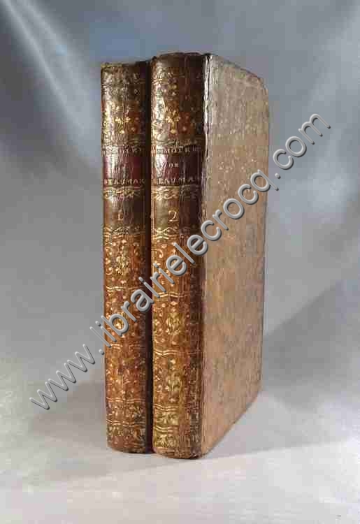 ,pleine basane mouchetée, dos lisse ornés aux petits fers dorés, pièces de titre et de tomaison, tranches rouges, reliure de l'époque (18ème s.), coiffes et coins frottés, mors légérement fendillé (reliure de l'époque). Il s'agit de l'édition des pièces relatives à l'affaire Goëzman . Titre frontispice de Marillier (non signé) à chaque volume et portrait de Beaumarchais de Cochin (non signé) . Cf. Cohen,127. Dans ces mémoires Beaumarchais ridiculise Goezman , un magistrat qui voulait lui spolier l'héritage du financier Duvernay qu'il venait d'obtenir, dans un style spirituel et incisif, ce qui lui vaudra le succès de son procès et de sa carrière théâtrale avec notamment les deux pièces Le Mariage de Figaro et Le barbier de Séville qu'il crééra peu après et qui s'inspirent largement de l'affaire Goezman. s.l.,n.d., circa,1778,2 vol. in 8 reliés (1), portrait, front., 394 pp., (1), front., 208 p., xvj-190 pp.
