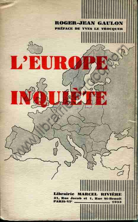 GAULON Roger-Jean L'Europe inquiète . Préface de Y. Le Trocquer.